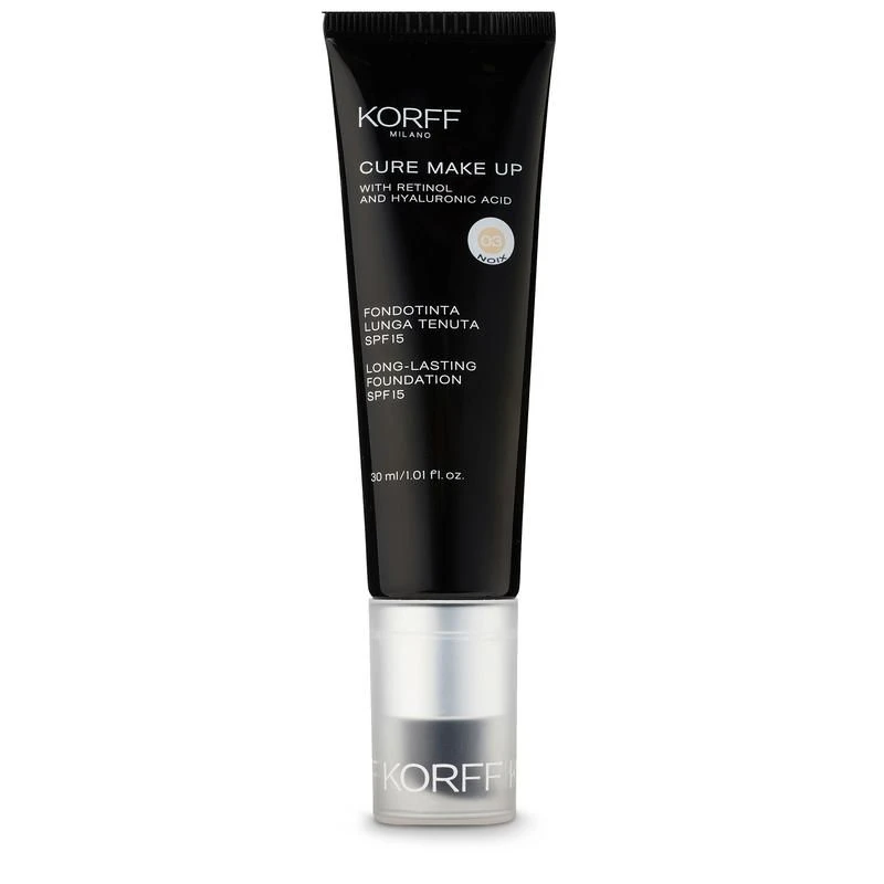Descrizione e Modo d’Uso Korff Cure Make Up Fondotinta Lunga Tenuta SPF15 colore n.03 coprenza perfetta 30ml